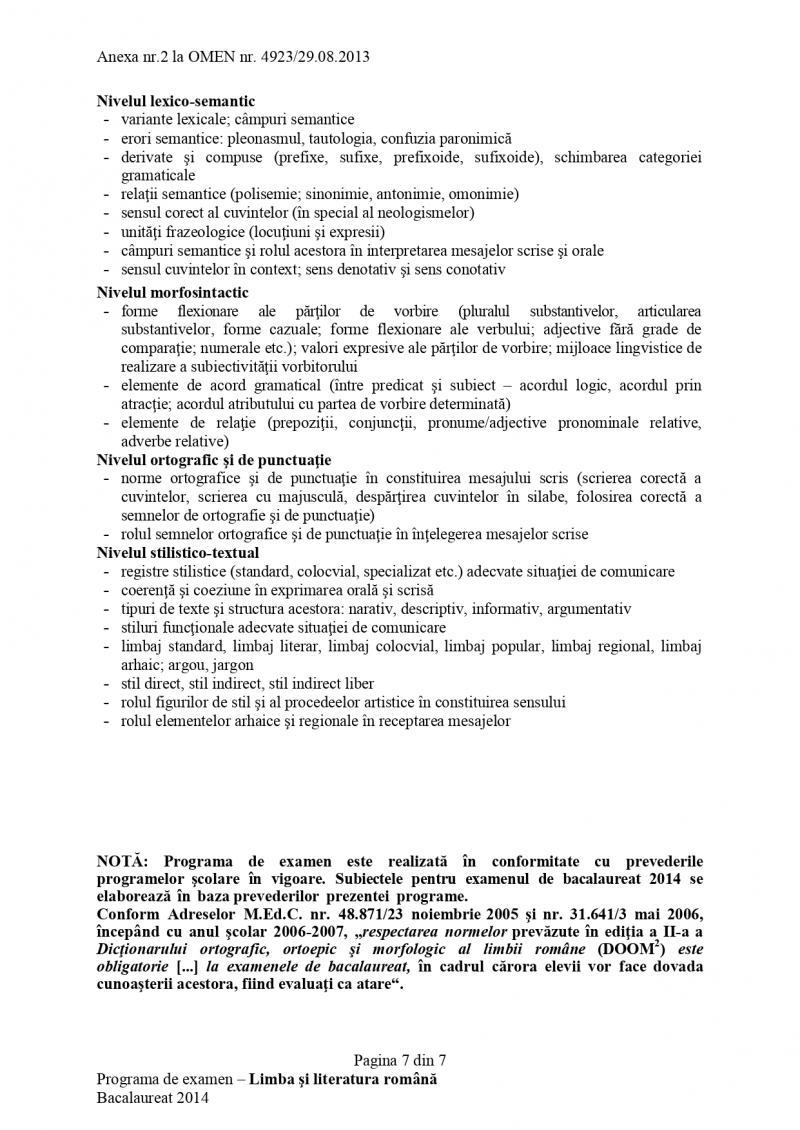 Subiectele pentru proba scrisă la română se elaborează de către Centrul Naţional de Evaluare și Examinare, pe baza conţinuturilor şi competenţelor asociate acestora, conform programelor.