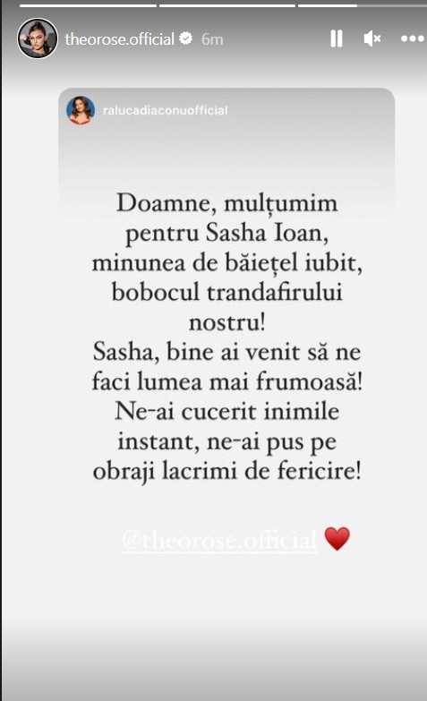 Foarte fericită pentru faptul că Sasha Ioan a venit pe lume este și sora lui Theo Rose, cea care a fost aleasă pentru a fi nașa micuțului