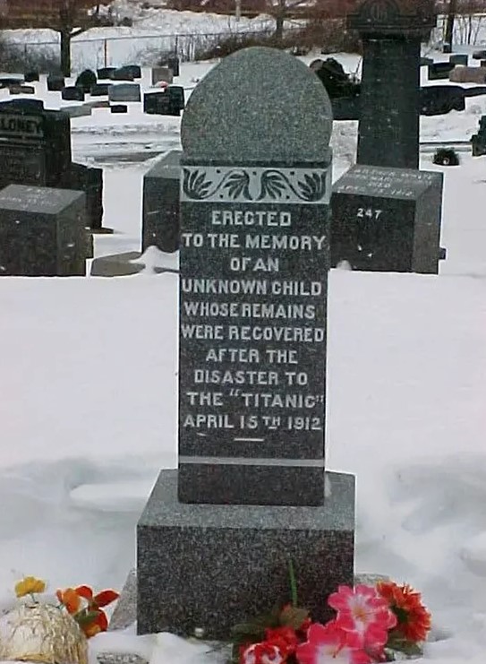 A devenit „copilul necunoscut” de pe Titanic, iar la data de 4 mai 1912 a fost înmormântat în cimitirul Fairview. În sicriul său a fost pus un pandantiv de cupru pe care scria „Copilul nostru”, iar pe piatra funerară erau inscripționate cuvintele: „Ridicată în memoria unui copil necunoscut ale cărui rămășițe au fost recuperate după dezastrul Titanicului din 15 aprilie 1912”.